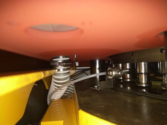 7. Loại đầu tiên sử dụng thiết bị bôi trơn bán tự động và tấm che chống bụi bằng thủy tinh ở phía trên của bàn quay.