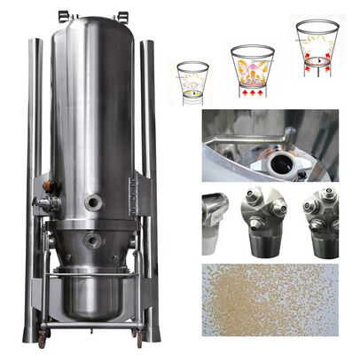 Máy được cấu tạo bởi hệ thống hút khí vào, hệ thống tầng chất lỏng, hệ thống phun trên, hệ thống phun dưới, hệ thống phun bên và hệ thống lọc khí thải và bụi.Vòi xịt phía trên cung cấp chức năng tạo hạt, vòi xịt phía dưới cung cấp chức năng phủ viên và vòi xịt bên cạnh cung cấp chức năng tạo viên.Các chức năng trên được thực hiện trong một máy tạo hạt tầng chất lỏng đa chức năng.Người dùng có thể chọn các chức năng tùy chọn theo yêu cầu quy trình thực tế.